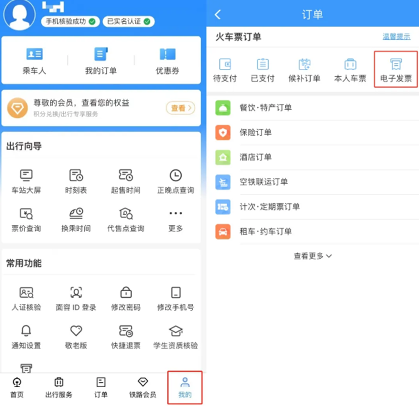 A:采用全面数字化的电子发票后,旅客不再需要到火车站、车票代售点、自助机上打印纸质报销凭证。可直接登录本人铁路12306账户申请开具电子发票。