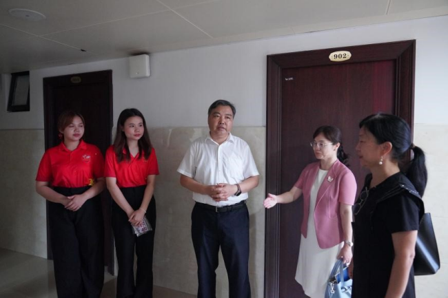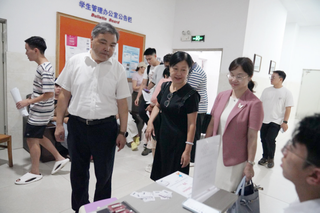 Vice PresidentXiao inspected the international student dormitory, engaged in conversationwiththe students, and extended hissincerewelcome. Healso learned about their adaptation to campus life.