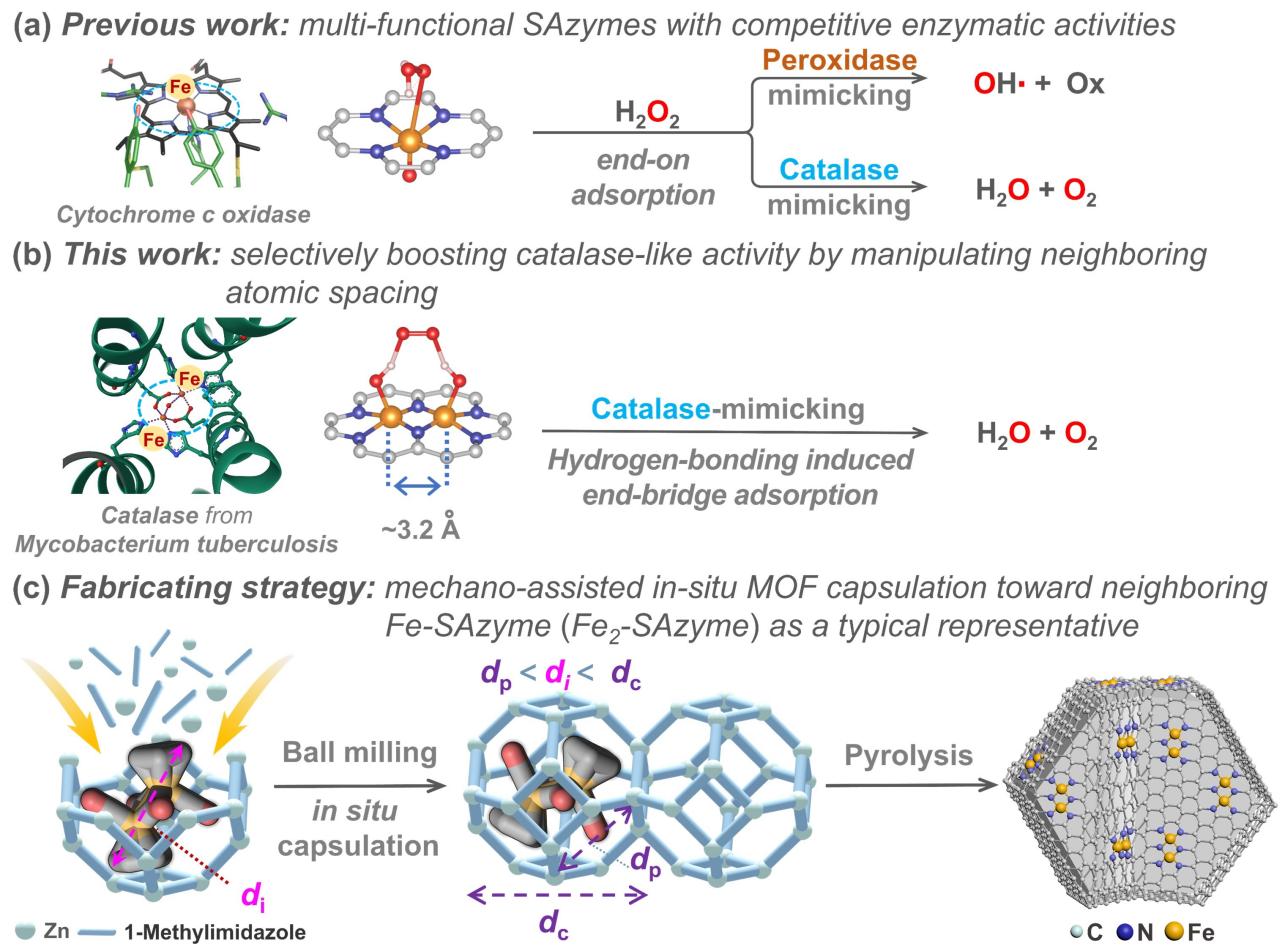 Recently, Associate Professor Chen Hongyu from the research team led by Academician Wang Shuangfei, focusing on "Clean Separation and Transformation of Plant Fibers and Green Preparation of Paper-Based Functional Materials" at our university, in collaboration with Professor Ji Hongbing from Zhejiang University of Technology, made new advances in the important field of biomimetic catalysis applying to SAzymes. The novel approach was based on the structural characteristics of natural enzymes. Utilizing a mechano-assisted in-situ MOF (Metal-Organic Framework) capsulation strategy, they fabricated an amphiaster-like Fe-SAzymes. This innovation provided a new approach and strategy at the atomic scale to address the challenge of regulating the activity of multi-functional nanozymes.