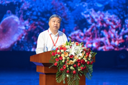 肖建庄在讲话中充分肯定了海洋学院10年来在学科发展、人才培养、科学研究、社会服务等方面取得的成绩。他指出,海洋学院自2014年9月成立以来,始终坚持以培养高水平研究型海洋科学人才为己任,为国家海洋战略和地方经济发展作出了贡献,已成为办学的一大特色,珊瑚礁成为学校研究的一大特长。海洋学院相继承担国家自然科学基金重点项目、重大项目课题和近7,000万元的中央海洋生态修复项目等一系列有关珊瑚礁研究的科研项目,并出版了国内唯一的关于珊瑚礁的综合性教材《珊瑚礁科学概论》,相关科研成果荣获广西自然科学一等奖。参与撰写的咨询报告为南海珊瑚礁生态环境保护与岛礁工程规划选址提供了重要科学依据,为服务国家政治外交大局提供了有力支撑。肖建庄希望海洋学院深入学习贯彻党的二十大精神,坚持以习近平新时代中国特色社会主义思想铸魂育人;加强科研创新,瞄准国家和地区的重大战略需求,形成以珊瑚礁系统科学为中心,多学科方向交叉与协同发展的局面,更好地服务“海洋强国”战略;积极落实国际化发展战略,发挥广西地缘优势,讲好中国—东盟之间的海洋与珊瑚礁故事,为推动一带一路和中国—东盟战略合作伙伴关系作出新的贡献。