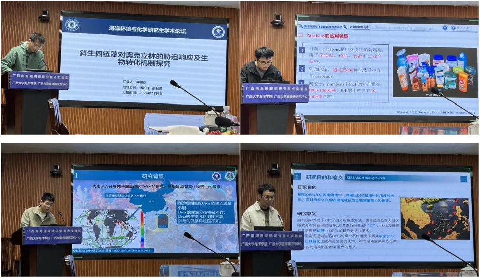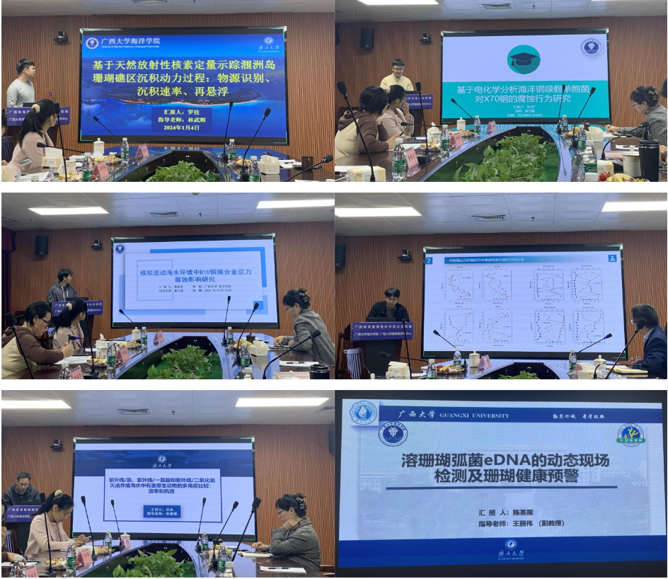 On January 4, 2024, the 2023 Academic Conference of Guangxi Key Laboratory of Coral Reef Research in the South China Sea -- Academic Forum for Graduate Students in Marine Environment and Chemistry was successfully held in the academic conference room of the College. The forum will be conducted in a combination of online and offline.