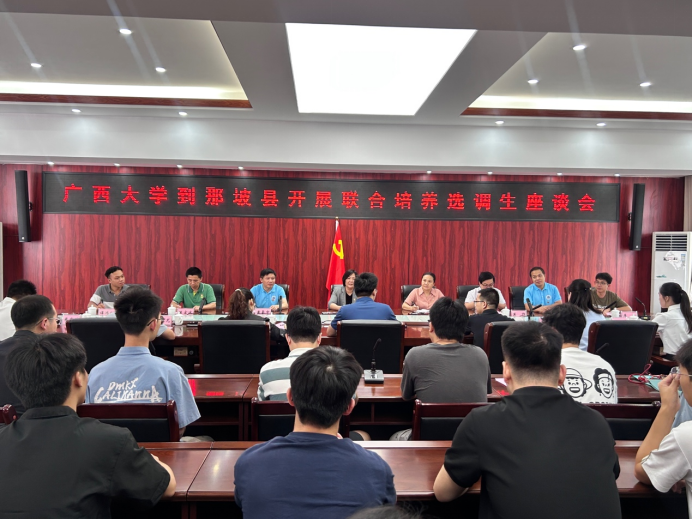 为贯彻落实学校党委关于选调生工作的决策部署,推动我校选调生“君武青苗”行动工作走深走实,7月22日,学院党委书记卢婵江带队赴那坡县开展调研,深入了解选调生在基层的成长情况与工作成效。调研团成员包括学院党委副书记黄路明,学院副院长黄豪中、莫帅、陈宏波,机自系主任邓建新,团委书记李华,助理教授谭鸿创,辅导员农婷婷、宋丹婷、梁炜昊、曾祥喜,以及21名学生党员代表。那坡县委常委、组织部部长梁安忠,那坡县妇女联合会党组书记、主席蓝婧月,那坡县委组织部副部长黄波,那坡县党员教育中心副主任黄家尤等接待了调研团,在那坡县工作的选调生代表也参加了交流座谈会。