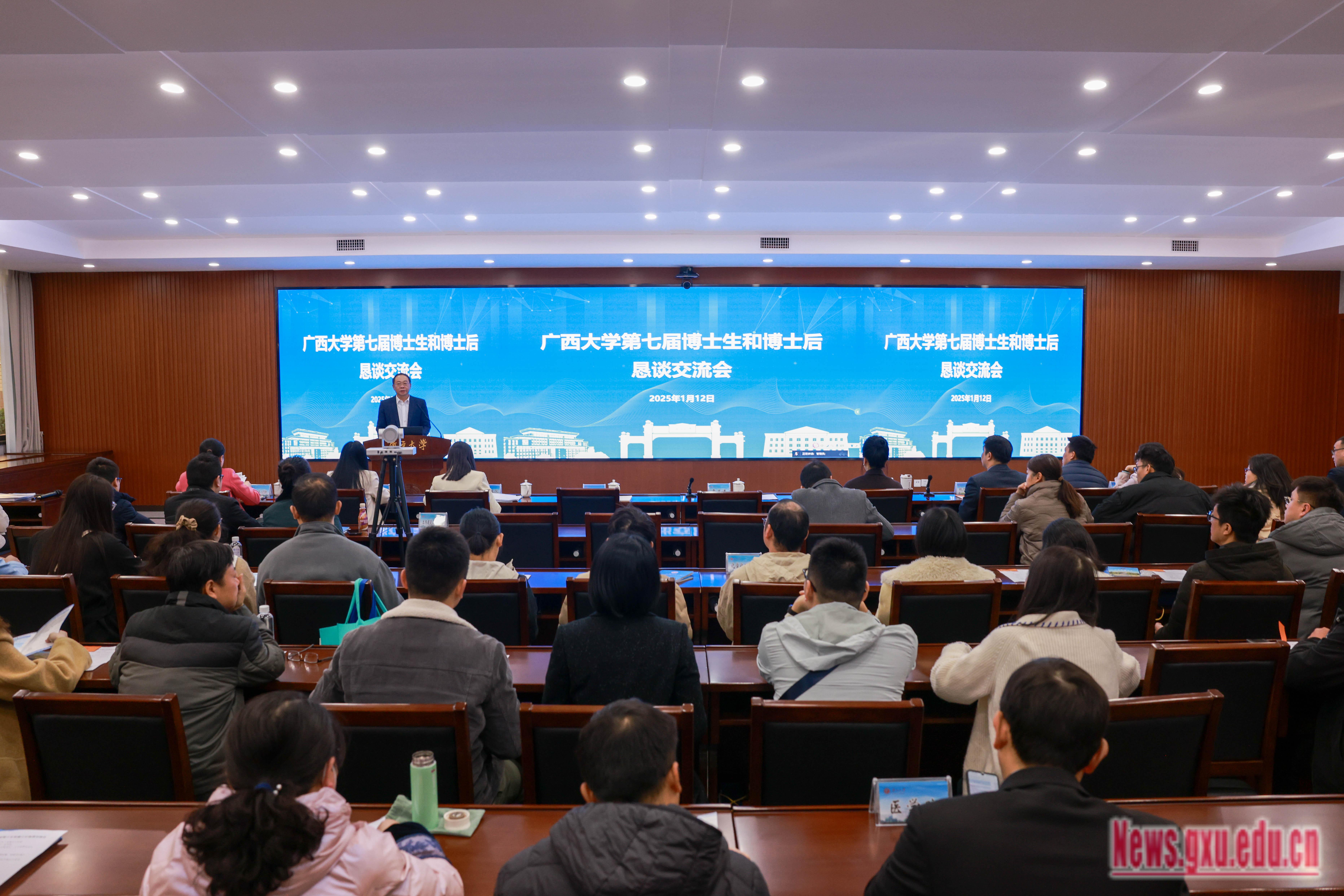 1月12日,第七届博士生和博士后恳谈交流会在君武馆第二会议室召开,来自海内外知名高校和科研机构的300余名博士生及博士后研究人员通过线下线上方式参会。校党委常委、副校长于文进出席会议并致辞。
